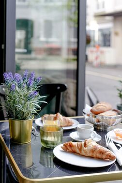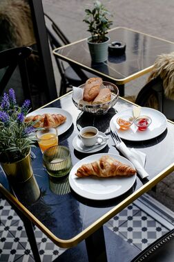 Beginne den Morgen mit einem Hauch von Paris – unser Frühstücksangebot umfasst alles von frisch gebackenen Croissants bis zu herzhaften Avocado-Broten. Wähle dazu einen klassischen Café au Lait oder einen unserer aromatischen Tees.
